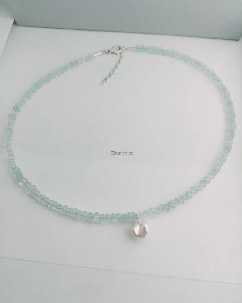 AQUA" Náhrdelník s akvamarínem a barokní perlou, stříbroNení skladem1 950 Kč/ ks