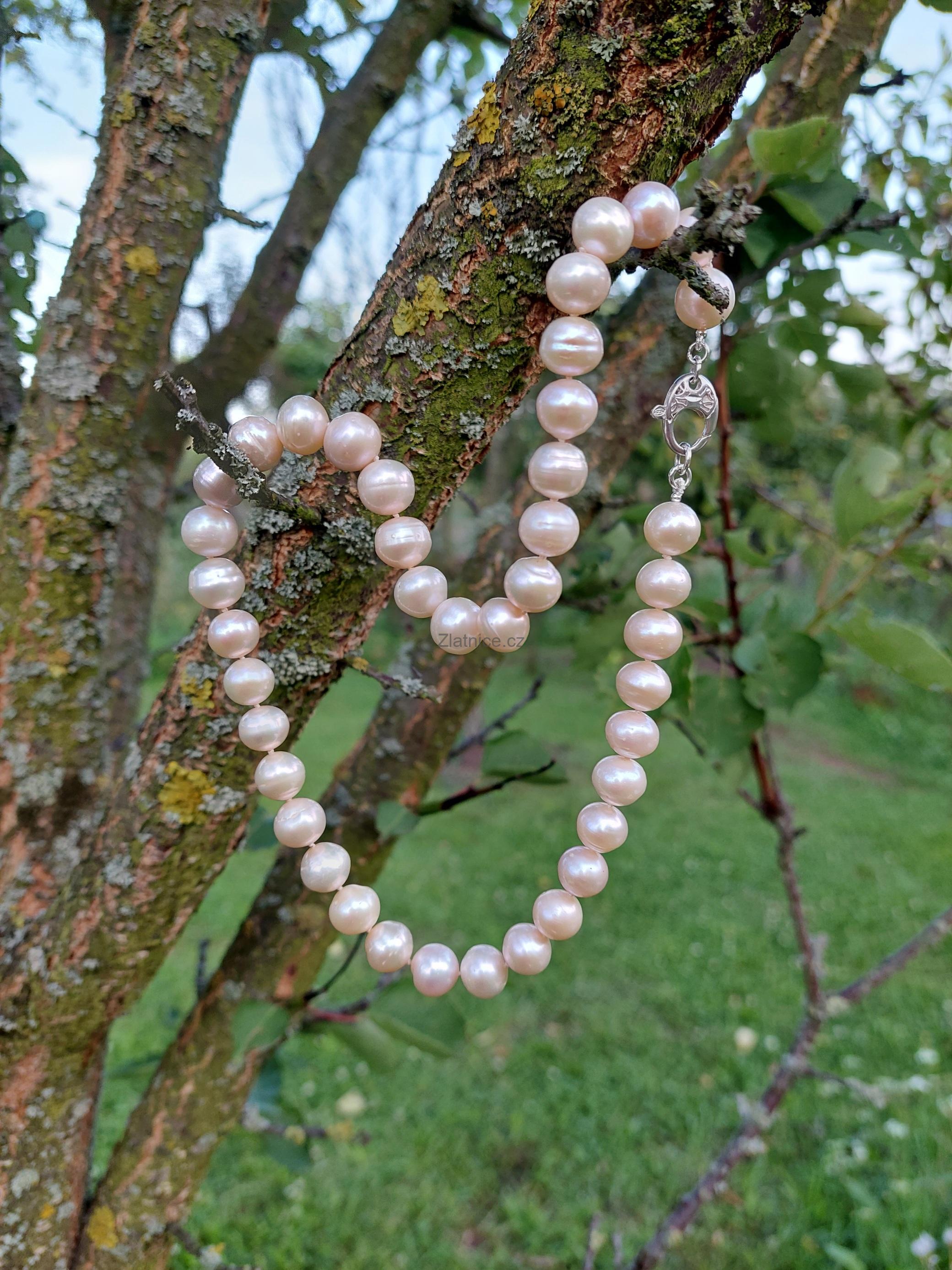 Krásný náhrdelník ze sladkovodních pudrových perel jsem navlékla na celosvětově nejkvalitnější návlekový materiál 100% hedvábí s uzlíky mezi perlami.