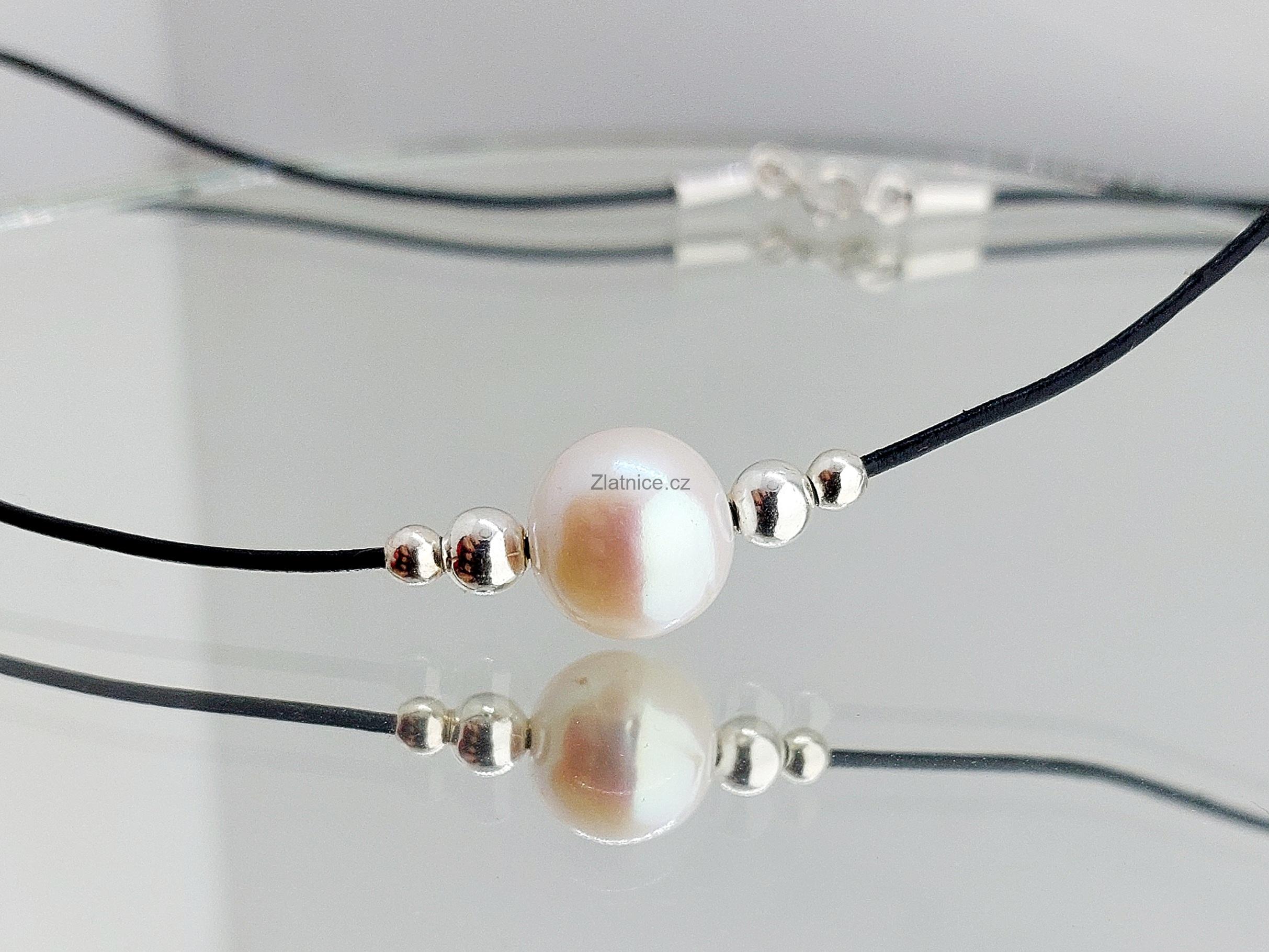 "EVI" kožený náhrdelník s raritní bílou perlouskladem 1 ks2 920 Kč/ ks
