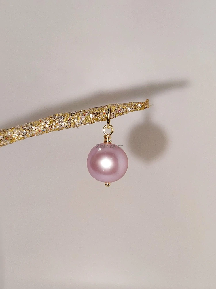 Něžný přívěsek s lila výběrovou sladkovodní perlou ve žlutém 14Kt zlatě z mé tvorby.