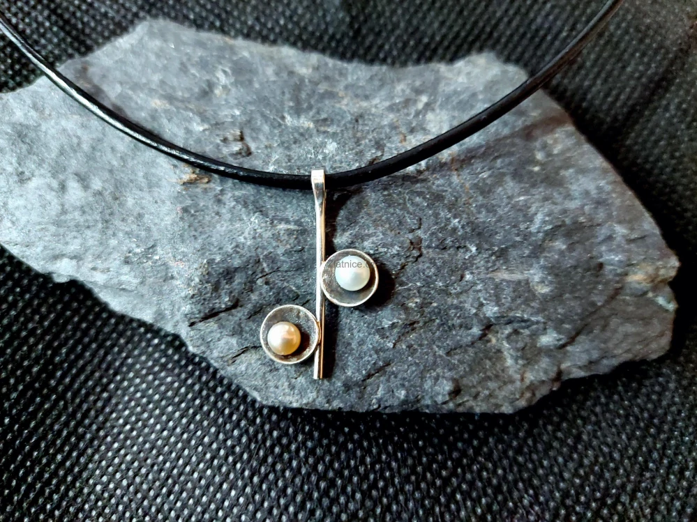 Náhrdelník "RELA" kůže a perly, stříbro 925