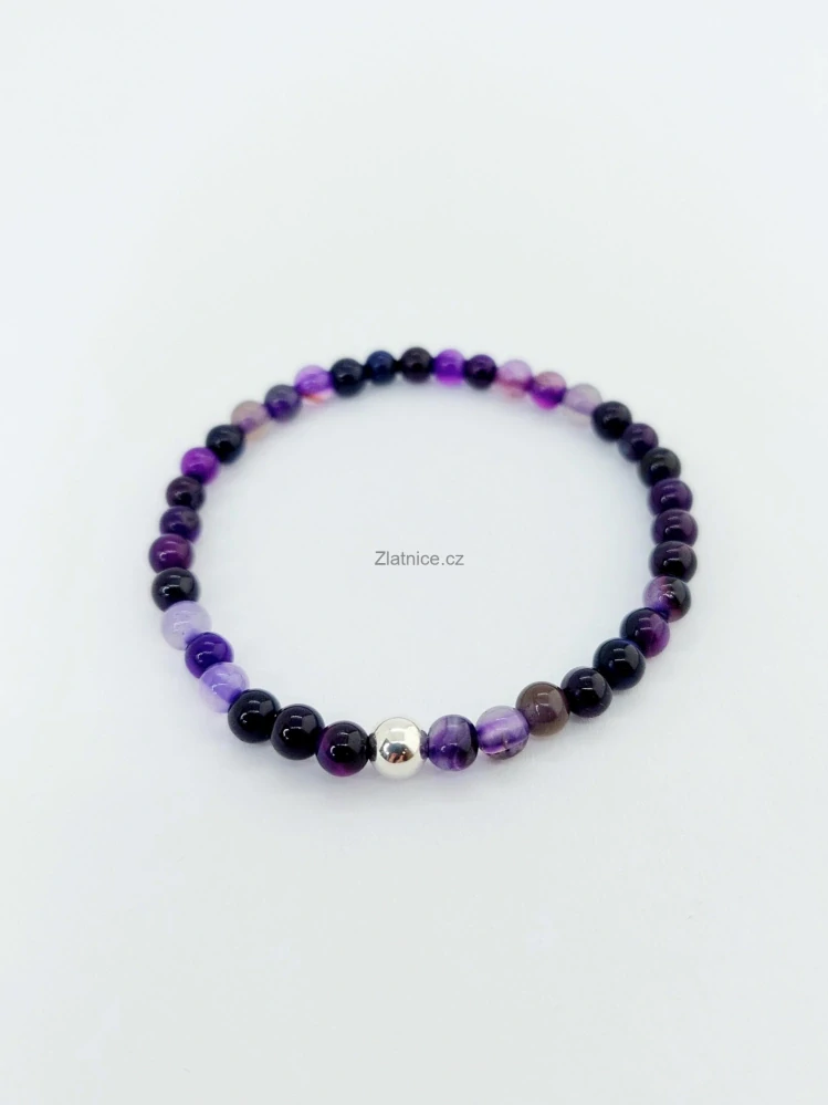 Náramek Reiki s krásným purpurovým achátem doplněný kuličkou ze stříbra ryzost 925/1000 z mé tvorby.