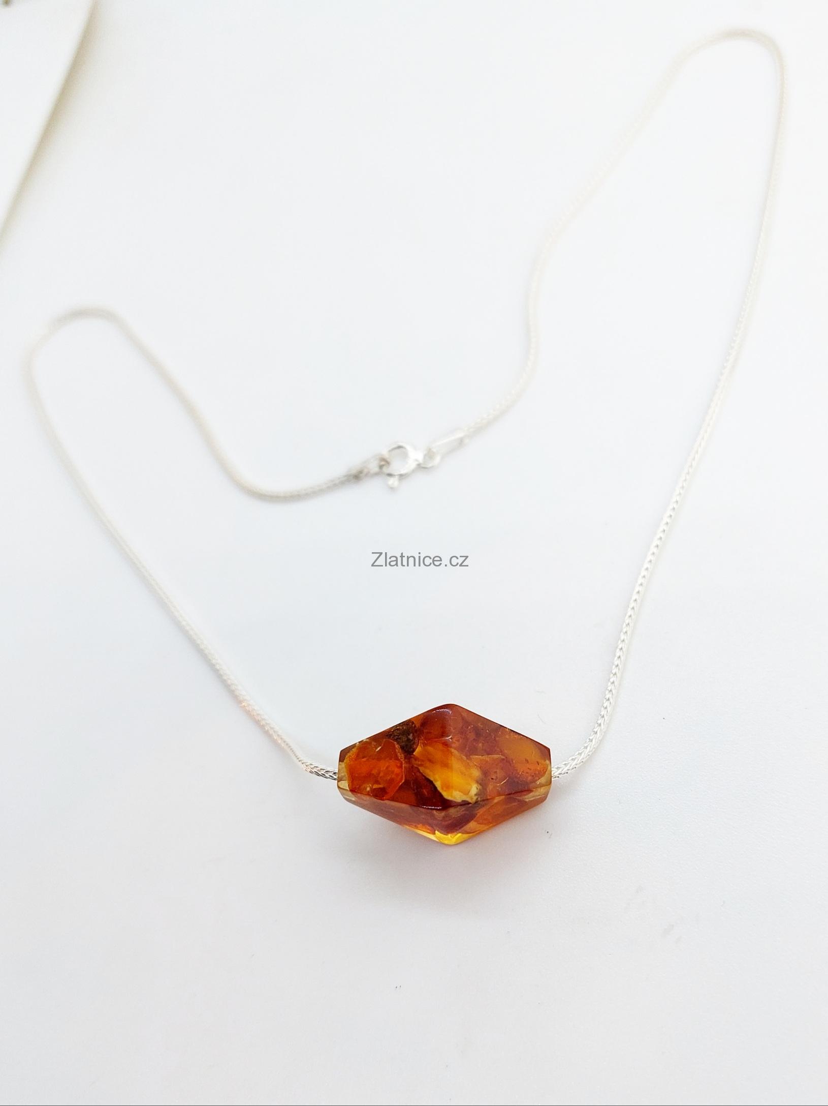 Řetízek a přívěsek s pravým jantarem ve tvaru kosočtverce