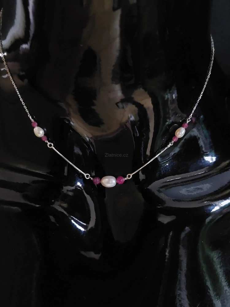 Řetízek sladkovodní perly a rubíny, Ag 925Skladem 1 ks1 860 Kč/ ks