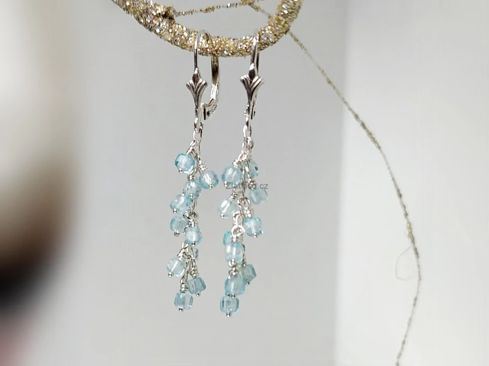 Jemné modelové visací náušnice s modrými topazy ve stříbře z mé tvorby.