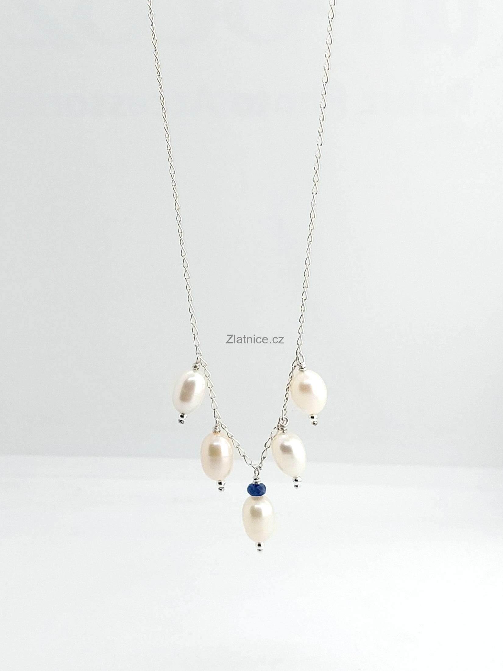 Stříbrný náhrdelník bílé perly a safírskladem 1 ks2 680 Kč/ ks